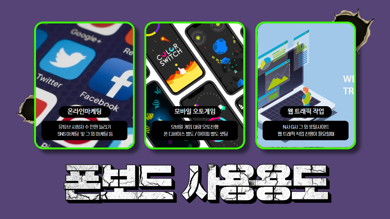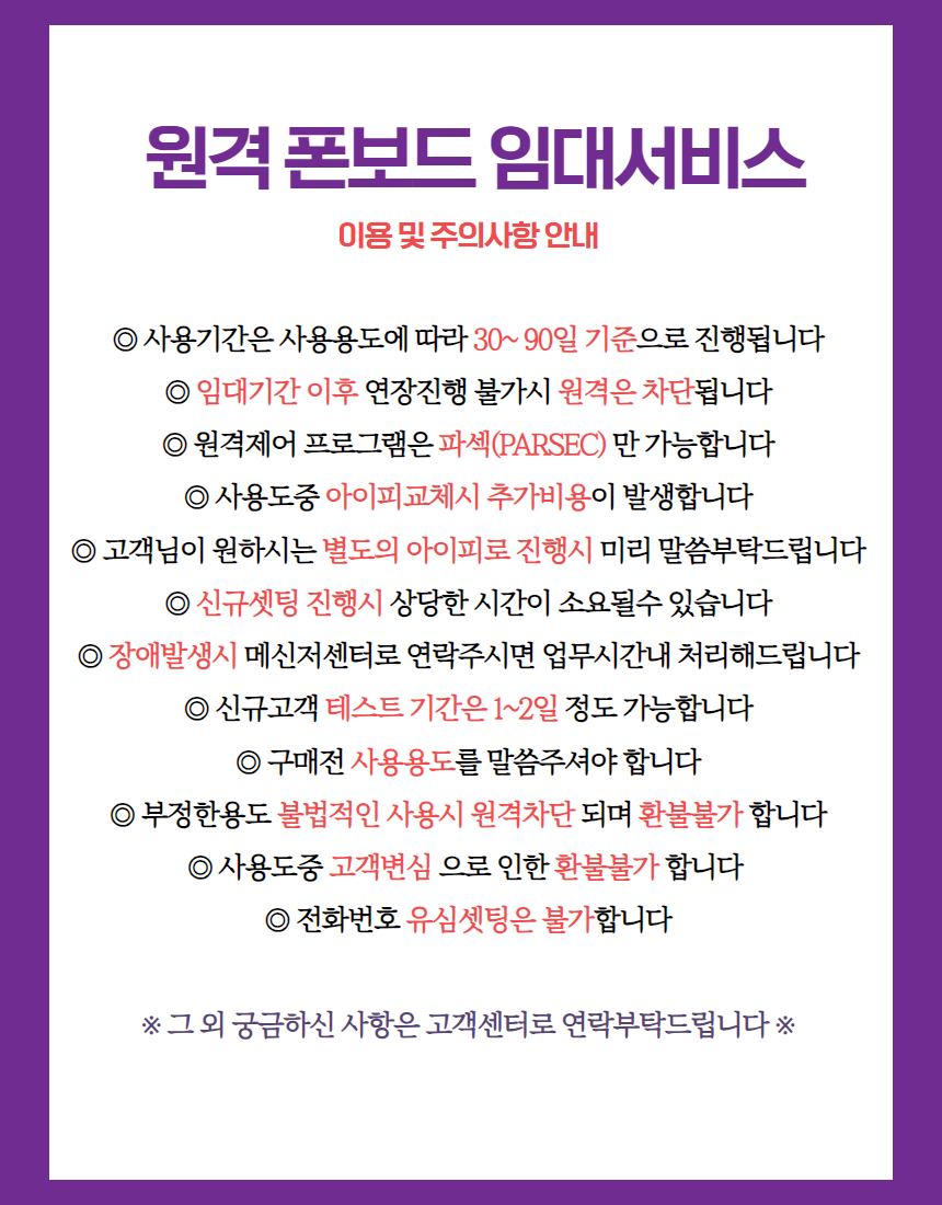 원격폰보드임대 임대기간:90일 단위 사용기준 (20개 폰화면 1set 기준 (스트리밍용 아이피포함)) (+950,000원)