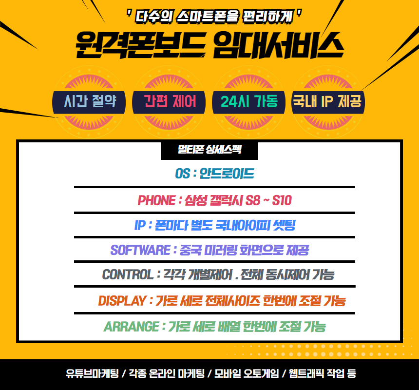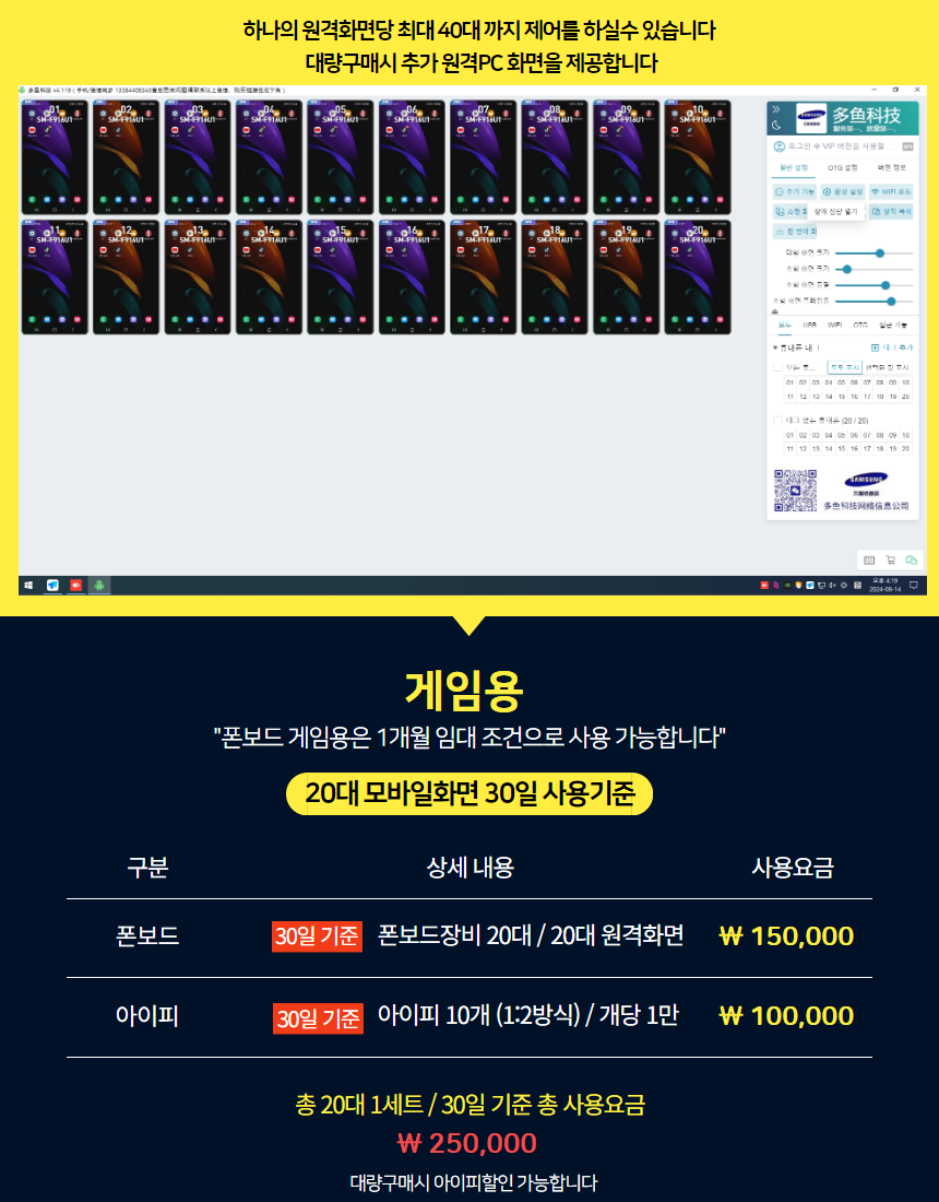 원격폰보드임대 임대기간:30일 사용기준 (20개 폰화면 1set 기준 (아이피 적용포함)) (+0원)