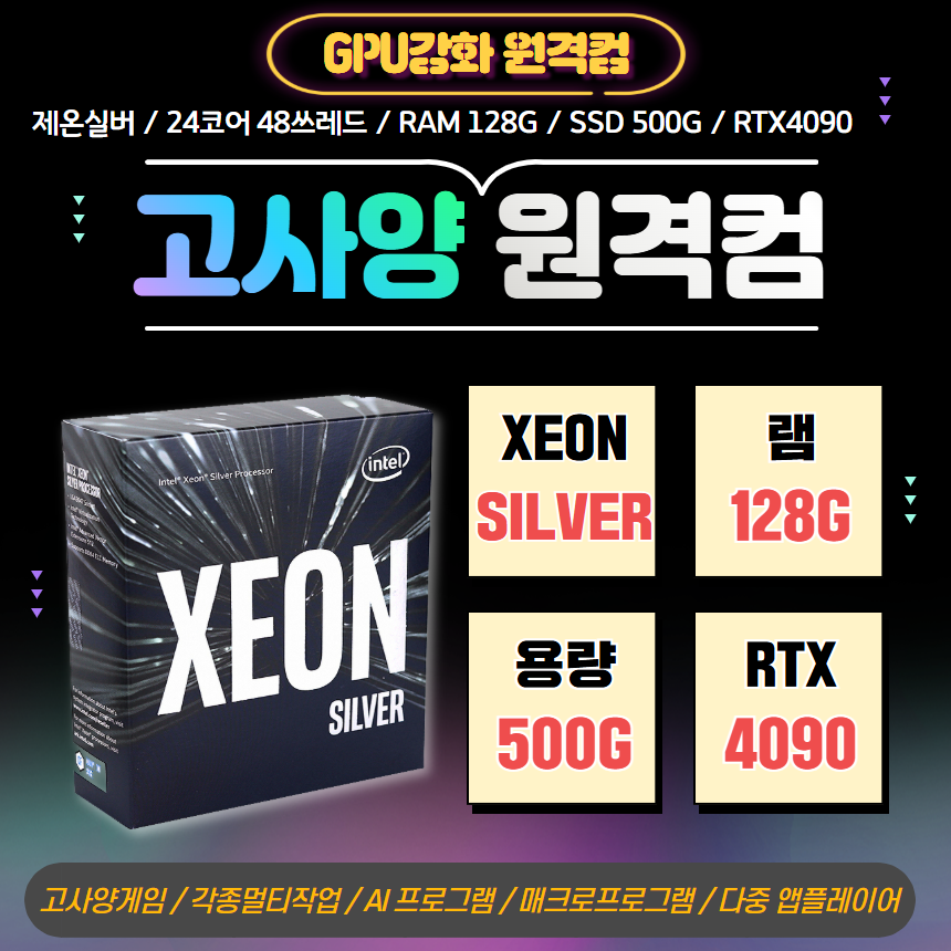 월 임대형:30일 사용기준 (제온실버 4114 / RAM 128g / SSD 500g / RTX 4090) (+100,000원)