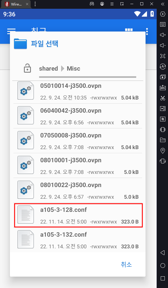 8. 원하는 와이어가드 아이피파일 선택