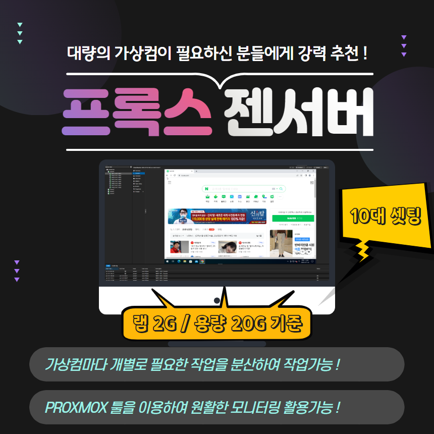 프록스 젠서버임대 기간:30일 사용기준 (12대 셋팅 / RAM 4G / SSD 20G)) (+90,000원)